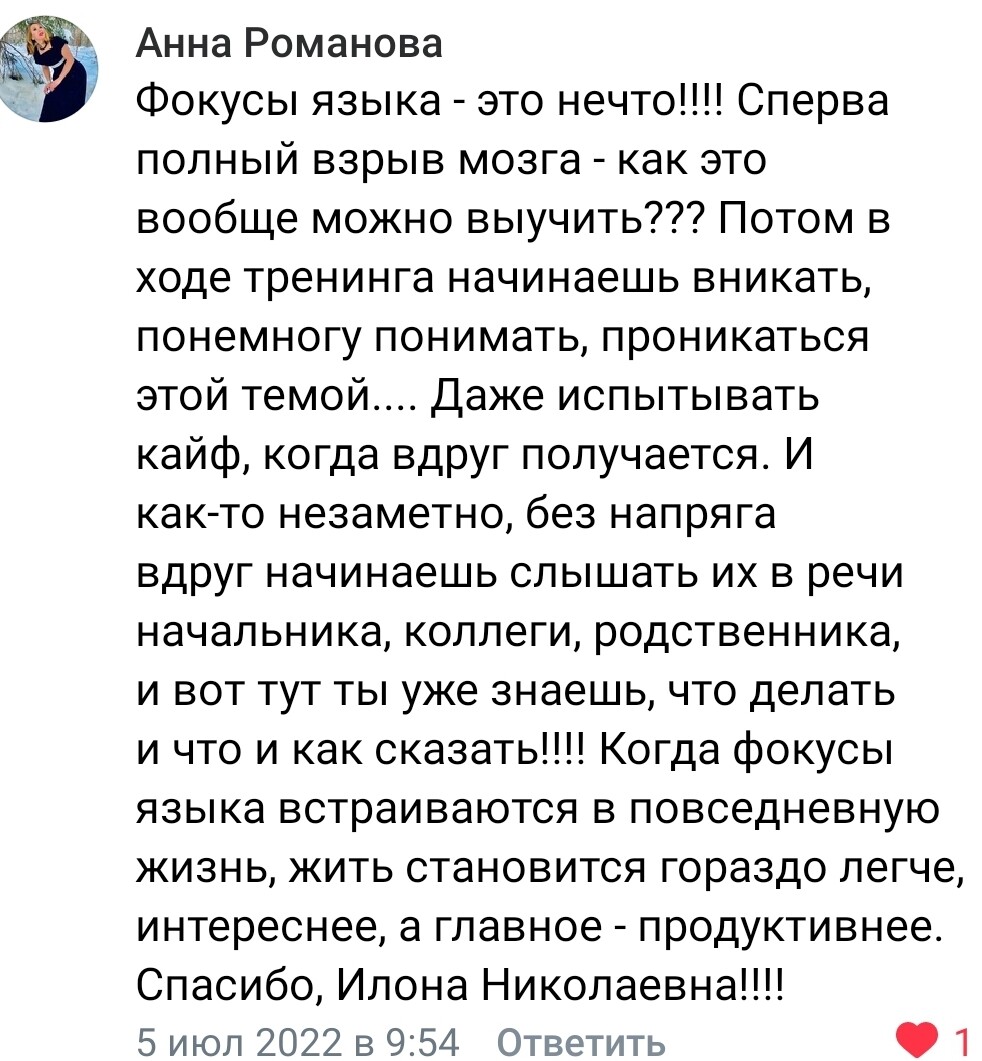 После этого тренинга понимаешь, насколько богат наш язык и сколько способов есть получить результат быстро и просто!